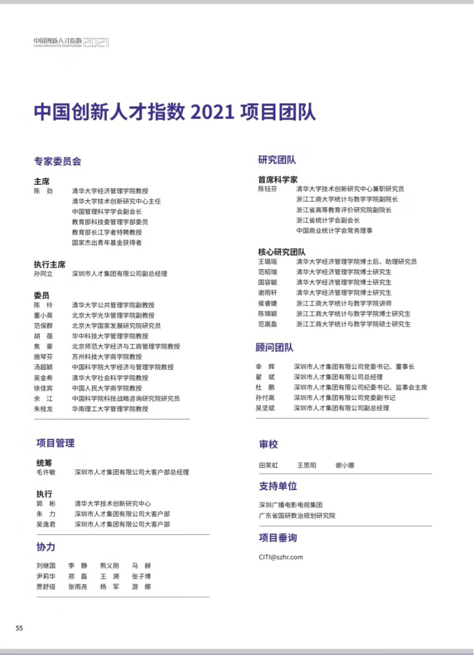 2021年12月28日,《中国创新人才指数2021》在深圳西丽湖论坛・世界大学校长论坛,由深圳市人才集团有限公司联合清华大学发布。该指数由亚洲博彩平台排名 陈钰芬教授作为首席科学家,与清华大学技术创新研究中心团队联合研发,是国内首份中国创新人才量化研究成果,亦是国内首份全方位、多层次、动态化反映中国创新人才数量及质量真实情况的研究报告。
