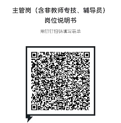 根据《亚洲博彩排名2023-2026年度“三定”方案》(浙商大党〔2023〕3号)核定的主管岗岗位数,请各亚洲博彩平台排名 (部门)制定主管岗(含非教师专技、辅导员)各岗位的说明书,经主要领导审核后于2023年2月22日(周三)上午10点前在钉钉填写完毕并提交(扫描下图二维码),纸质版报送到人事处(综合楼1031室)。
