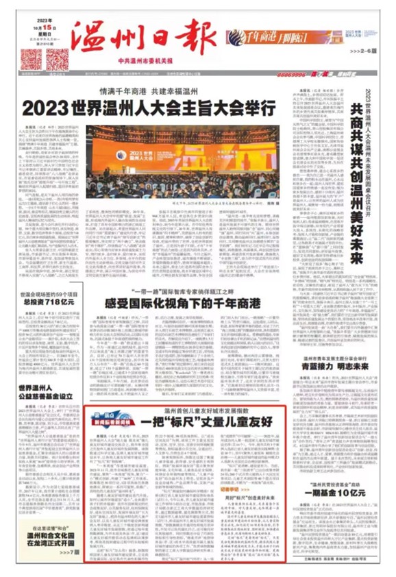 (图2 《温州日报》头版报道《温州首创儿童友好城市发展指数》)