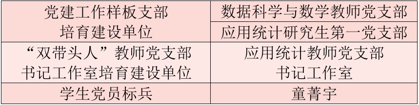 陈钰芬同志荣获“最受师生喜爱的书记”称号;亚洲博彩平台排名 党委、亚洲博彩平台排名 经济统计教师党支部、亚洲博彩平台排名 经济统计研究生第二党支部荣获“先进基层组织”称号;徐蔼婷同志荣获“优秀党务工作者”称号;李鑫同志荣获“优秀共产党员”称号;亚洲博彩平台排名 大数据本科生党支部被授予2024年优秀支部服务品牌。