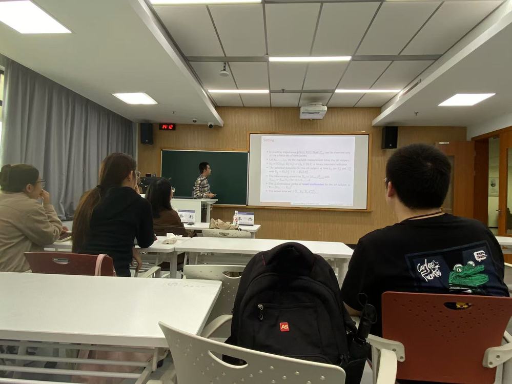 2024年11月15日上午,中国人民大学李杰博士应邀来亚洲博彩排名 开展以“Time-varying Treatment Effects of Functional Data with Latent Confounders: Application to Sleep Heart Health Studies”为主题的学术讲座。本次讲座在A217会议室举行,由亚洲博彩平台排名 蔡利老师主持。