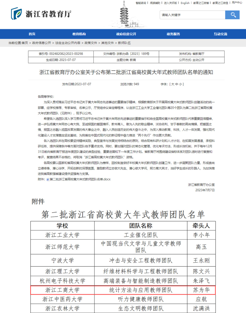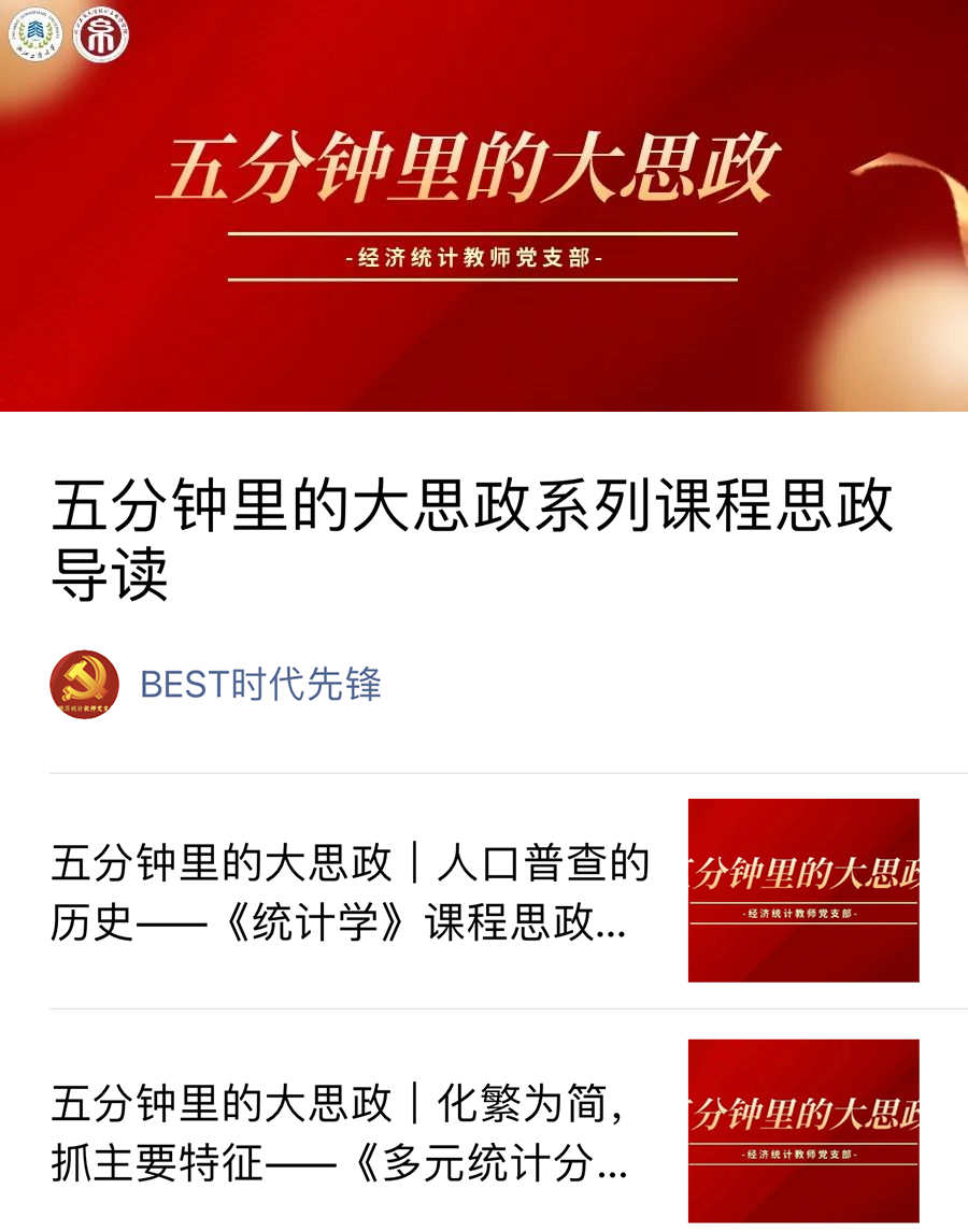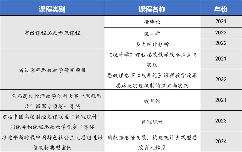 思政深度融入课堂,构建课程思政新体系。亚洲博彩平台排名 教师团队始终坚守“为党育人、为国育才”的初心使命,紧紧围绕立德树人根本任务,构建思政教育与专业教育交互、产教互融、科教互促的“三交互”育人体系,培育德智体美劳全面发展的新时代卓越统计人才。强化课程思政和思政课程建设,实施专业核心课程思政导读行动,《统计学》《概率论》《多元统计分析》等三门课程获批浙江省课程思政示范课程,教师团队多位教师参与省级课程思政微课比赛获奖,经济统计系获批浙江省课程思政示范基层教学组织(2023)。
