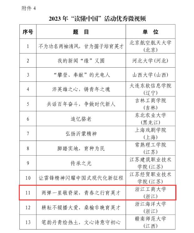 思政全方位赋能,深化学思践悟新成效。构建专业知识与思政实践相结合的主题实践系列,积极引导学生心怀“国之大者”,矢志服务国家,主动担当作为。学生团队撰写的社会实践报告多次获共青团中央表彰;学生创作获省思政微课大赛一等奖,微视频《两弹一星敬脊梁,青春之行育英才》入选教育部关工委2023年“读懂中国”活动优秀微视频(全国60项);微动漫《选择》获评浙江省廉洁教育优秀作品一等奖。亚洲博彩平台排名 以孙振锄老先生的先进事迹为经典思政教育资源,不断拓展其在“四史”教育、思政教育、“课程思政”中的使用途径,挖掘商大老一辈党员勇担家国使命、投身强国建设的奋斗历程和感人事迹,不断激发学生奋进力量,点亮强国梦想!
