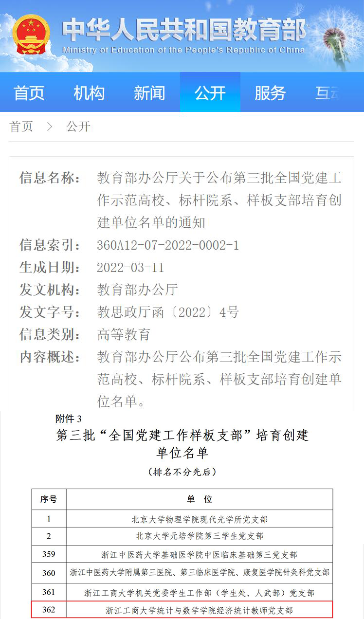 统计学入选首批国家特色专业(2008),经济统计学、应用统计学是国家一流本科专业建设点,经济统计学入选浙江省重点专业(2003)、“十二五”优势专业(2012)、浙江省“十三五”优势专业(2016)。在校友会发布2023中国大学一流专业排名中,应用统计学专业获评A+、经济统计学专业获评A类。